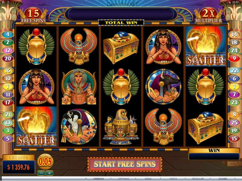 Der Videoslot bietet 25 Gewinnkombinationen, ein Wildsymbol ( Throne Of Egypt Schriftzug) das ganze Walzen füllen kann, als auch ein durch Scatter ausgelöstes Freispiel Feature. Natürlich gibt es zum Thema Ägypten passend auch ein Bonus Game.